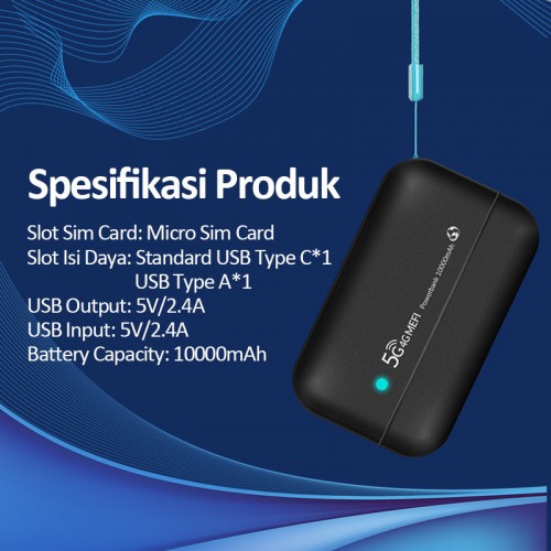 Ponsel ini memiliki baterai internal 10.000 mAh dan menggunakan antarmuka Tipe-C, yang menyediakan masa pakai baterai yang lama dan pengisian daya yang mudah. Ini juga merupakan sumber daya bergerak yang dapat memberi daya pada perangkat lain. Mendukung 10 perangkat untuk terhubung pada saat yang sama, memudahkan berbagi jaringan.